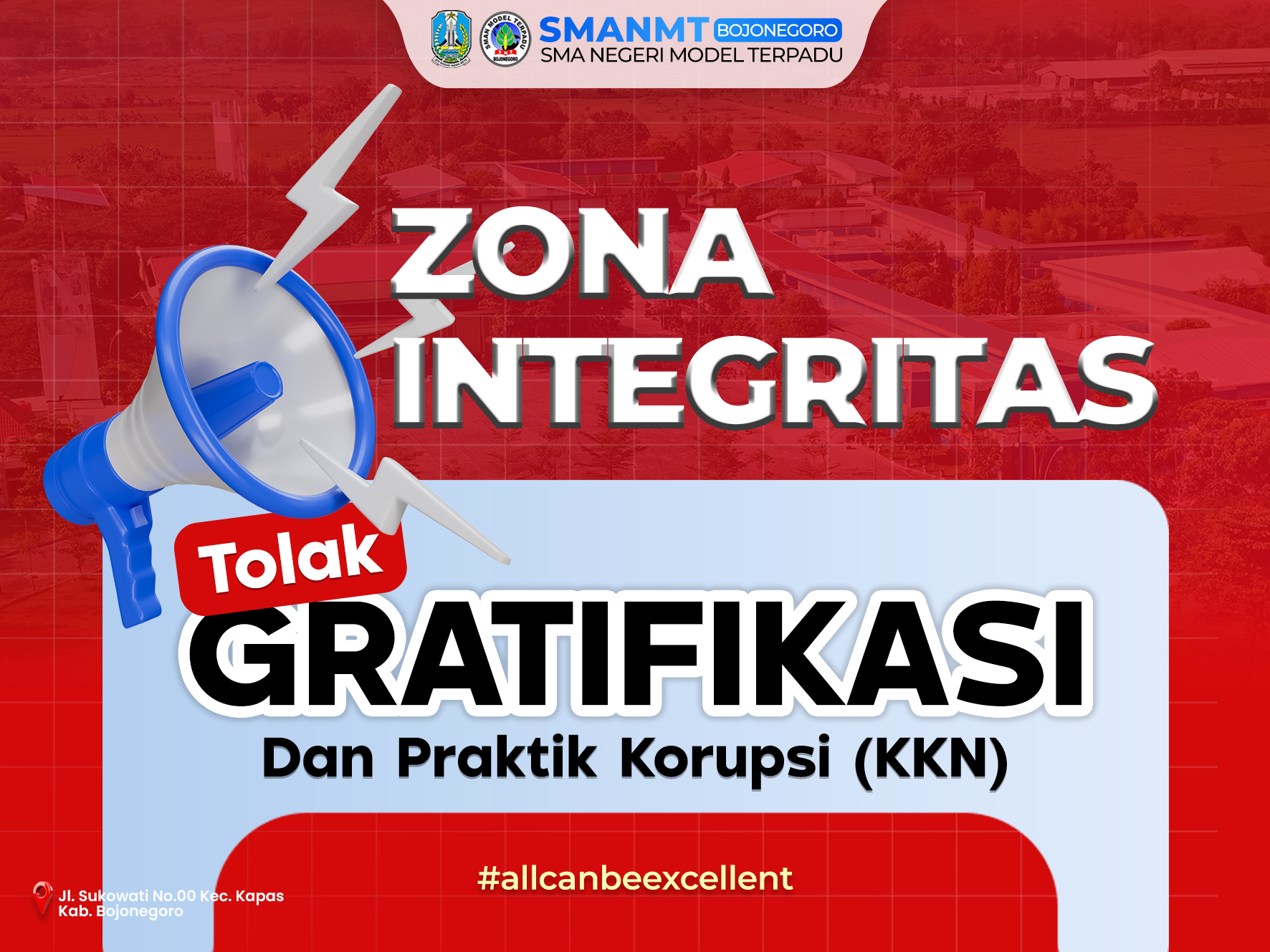 SMA Negeri Model Terpadu Bojonegoro menegaskan komitmen kuat dalam mewujudkan tata kelola pendidikan yang bersih, transparan, dan berintegritas. Sebagai bagian dari upaya tersebut, sekolah secara tegas dan tanpa kompromi menolak segala bentuk gratifikasi dalam seluruh layanan dan aktivitas pendidikan.