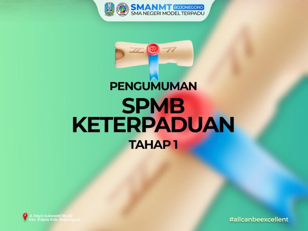 PENGUMUMAN KELULUSAN SELEKSI SPMB JALUR KETERPADUAN SMA NEGERI MODEL TERPADU BOJONEGORO TAHUN PELAJARAN 2026/2027 Nomor : 400.3.8/348/101.6.22.20/2026 Berdasarkan Petunjuk Teknis Sistem Penerimaan Murid Baru Jenjang SMAN, SMKN, dan SLBN Provinsi..