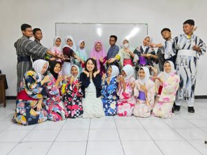 Dalam acara tersebut, para guru juga mendapat kesempatan unik untuk mengenakan Yukata, salah satu pakaian tradisional Jepang yang biasa digunakan saat musim panas. Yukata dikenakan dengan bimbingan langsung dari Hiramatsu Nanami, yang juga menjelaskan secara menarik perbedaan antara Yukata dan Kimono, baik dari sisi fungsi, bahan, maupun cara pemakaiannya.